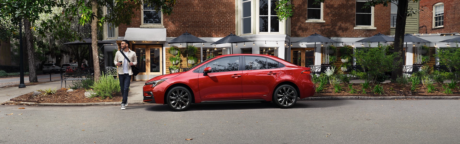 Make a great first impression in Corolla Hybrid’s sleek Infrared Special Edition. This unique, stylish hybrid is offered in Infrared and complemented by bold red exterior graphics. Black badging and 18-in. graphite wheels2 help give this sedan a sleeker look. Inside, red stitching and accents will help get the adrenaline running before every drive.