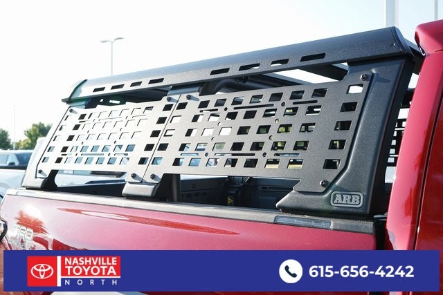 , SAFETY FEATURES, AUDIO FEATURES, COMFORT AND CONVENIENCE, EXTERIOR FEATURES, ADDITIONAL FEATURES, 2.4L I4 PDI Hybrid Turbocharged DOHC 16V. TRD Off Road Package, 2.4L I4 PDI Hybrid Turbocharged DOHC 16V, 18 Alloy Wheels, 3.583 Axle Ratio, 4-Wheel Disc Brakes, 6 Speakers, ABS brakes, Air Conditioning, All Weather Floor Liners (TMS), Alloy wheels, AM/FM radio: SiriusXM, Anti-whiplash front head restraints, Apple CarPlay/Android Auto, ARB Bed Rack HD Kit w/Molle Panels (TMS), Auto High-beam Headlights, Auto-dimming Rear-View mirror, Automatic temperature control, Ball Mount (TMS), Bed Scene Lighting (TMS), Bed Step (TMS), Brake assist, Bumpers: body-color, Center Console Vault (TMS), Door Edge Guard (TMS), Driver door bin, Driver vanity mirror, Dual front impact airbags, Dual front side impact airbags, Electronic Stability Control, Emergency communication system: Safety Connect (1-year trial), Exterior Parking Camera Rear, Fabric Seat Trim, Four wheel independent suspension, Front anti-roll bar, Front Bucket Seats, Front Center Armrest, Front fog lights, Front reading lights, Fully automatic headlights, Heated door mirrors, Heated Front Seats, Illuminated entry, Illuminated Front Emblem Bright Chrome (TMS), JBL Premium Audio, Knee airbag, Leather Shift Knob, Leather steering wheel, Low tire pressure warning, Navigation system: Drive Connect (1 year trial) includes Cloud Navigation with real time traffic and Google POI, Occupant sensing airbag, Outside temperature display, Overhead airbag, Overhead console, Paint Protection Film (TMS), Panic alarm, Passenger door bin, Passenger vanity mirror, Phone Cables - Smart USB (TMS), Power door mirrors, Power steering, Power windows, Predator Step (TMS), Radio: 14 Toyota Audio Multimedia, Radio: 8 Toyota Audio Multimedia, Radio: Premium Audio w/14 Display, Rear step bumper, Rear window defroster, Remote keyless entry, Security system, SofTex Seat Trim, Speed control, Speed-sensing steering, Split folding rear seat, Steering wheel mounted audio controls, Tachometer, Telescoping steering wheel, Tilt steering wheel, Traction control, Trip computer, Turn signal indicator mirrors, and Variably intermittent wipers.