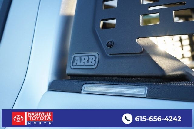 , SAFETY FEATURES, AUDIO FEATURES, COMFORT AND CONVENIENCE, EXTERIOR FEATURES, ADDITIONAL FEATURES, 4WD. 4WD, 3.583 Axle Ratio, 4-Wheel Disc Brakes, 6 Speakers, ABS brakes, Air Conditioning, All Weather Floor Liners (TMS), Alloy wheels, AM/FM radio: SiriusXM, Anti-whiplash front head restraints, Apple CarPlay/Android Auto, ARB Bed Rack HD Kit w/Molle Panels (TMS), Auto High-beam Headlights, Auto-dimming Rear-View mirror, Automatic temperature control, Bed Scene Lighting (TMS), Bed Step (TMS), Black Badge Overlay (TMS), Brake assist, Bumpers: body-color, Driver door bin, Driver vanity mirror, Dual front impact airbags, Dual front side impact airbags, Electronic Stability Control, Emergency communication system: Safety Connect (1-year trial), Exterior Parking Camera Rear, Fabric Seat Trim, Four wheel independent suspension, Front anti-roll bar, Front Bucket Seats, Front Center Armrest, Front fog lights, Front reading lights, Fully automatic headlights, Heated door mirrors, Illuminated entry, JBL Premium Audio, Knee airbag, Leather Shift Knob, Leather steering wheel, Low tire pressure warning, Occupant sensing airbag, Outside temperature display, Overhead airbag, Overhead console, Panic alarm, Passenger door bin, Passenger vanity mirror, Power door mirrors, Power steering, Power windows, Predator Step (TMS), Radio: 8 Toyota Audio Multimedia, Radio: Premium Audio w/14 Display, Rear step bumper, Rear window defroster, Remote keyless entry, Security system, SofTex Seat Trim, Speed control, Speed-sensing steering, Split folding rear seat, Steering wheel mounted audio controls, Tachometer, Telescoping steering wheel, Tilt steering wheel, Traction control, Trip computer, Turn signal indicator mirrors, Variably intermittent wipers, Wheels: 18 TRD Black (TMS) (PPO), and Wheels: 18 TRD Sport Alloy.