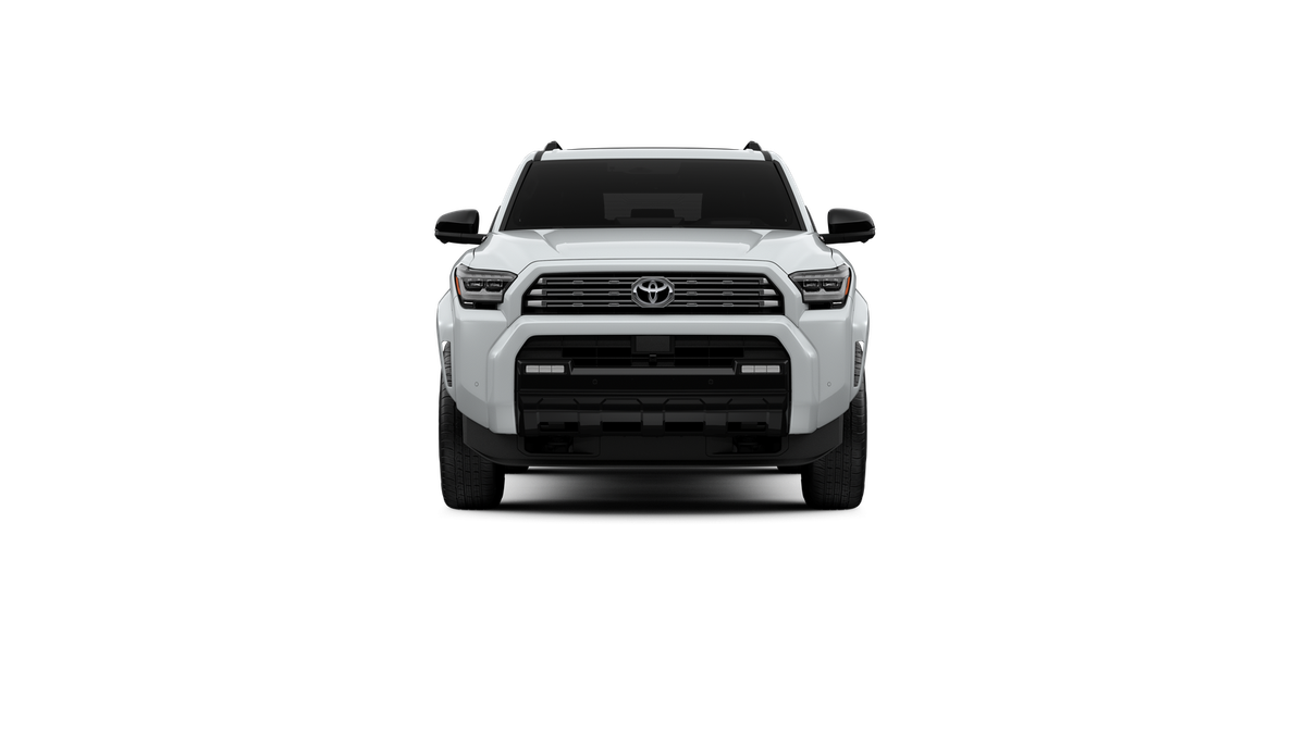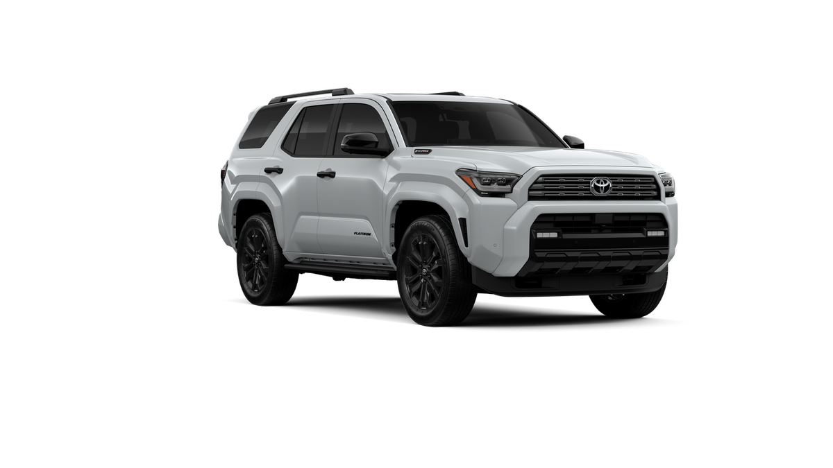 - Dark-chrome tri-bar grille; gloss-black mirror caps and door handles; color-keyed overfenders and rear spoiler; gloss-black "PLATINUM" and "4RUNNER" badges