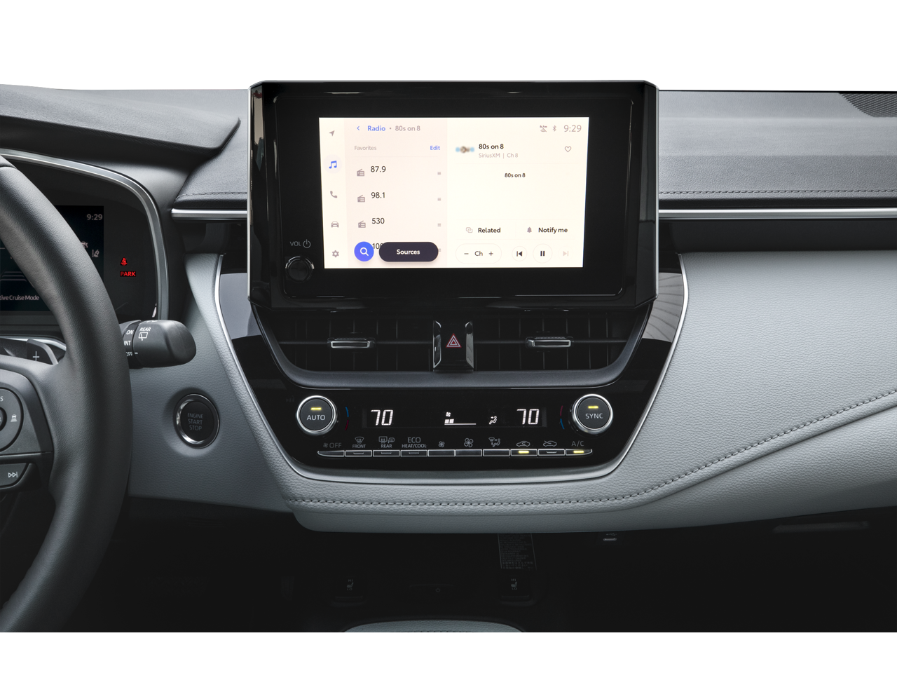 , SAFETY FEATURES, AUDIO FEATURES, COMFORT AND CONVENIENCE, EXTERIOR FEATURES, ADDITIONAL FEATURES. All Weather Floor Liner Package, 4-Wheel Disc Brakes, 8 Speakers, ABS brakes, Air Conditioning, Alloy wheels, AM/FM radio: SiriusXM, Auto High-beam Headlights, Automatic temperature control, Black Emblem Overlays, Brake assist, Bumpers: body-color, Compass, Cross Bars, Delay-off headlights, Driver door bin, Driver vanity mirror, Dual front impact airbags, Dual front side impact airbags, Electronic Stability Control, Emergency communication system: Safety Connect (up to 10-year trial subscription), Exterior Parking Camera Rear, Four wheel independent suspension, Frameless Homelink Mirror, Front anti-roll bar, Front Bucket Seats, Front Center Armrest, Front dual zone A/C, Front fog lights, Front reading lights, Heated door mirrors, Heated front seats, Heated Sport Front Seats, Illuminated entry, Knee airbag, Leather Shift Knob, Leather steering wheel, Low tire pressure warning, Multimedia Glass Screen Protector, Occupant sensing airbag, Outside temperature display, Overhead airbag, Overhead console, Panic alarm, Passenger door bin, Passenger vanity mirror, Power door mirrors, Power driver seat, Power steering, Power windows, Radio data system, Radio: 8 Toyota Audio Multimedia, Rear anti-roll bar, Rear seat center armrest, Rear side impact airbag, Rear window defroster, Rear window wiper, Remote keyless entry, Security system, SofTex Seat Trim with Fabric Inserts, Speed control, Speed-sensing steering, Split folding rear seat, Spoiler, Steering wheel mounted audio controls, Tachometer, Telescoping steering wheel, Tilt steering wheel, Traction control, Trip computer, Trunk LED Light, Turn signal indicator mirrors, Two-Tone, Variably intermittent wipers, and Wheels: 18 Graphite-Colored Alloy. 30/38 City/Highway MPG