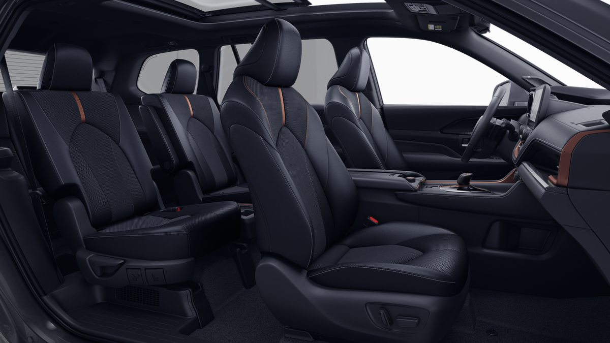 - Leather-trimmed with Ultrasuede® front- and second-row seats; heated and ventilated front seats; 10-way power-adjustable driver's seat including power lumbar support; 8-way power-adjustable front passenger seat; seat memory function