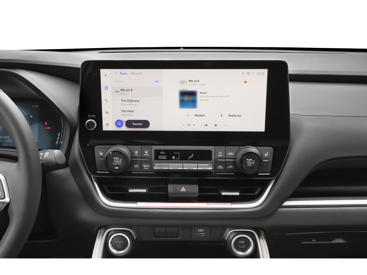 , SAFETY FEATURES, AUDIO FEATURES, COMFORT AND CONVENIENCE, EXTERIOR FEATURES, ADDITIONAL FEATURES, 2.5L 4-Cylinder 16V. 2.5L 4-Cylinder 16V, 3rd row seats: split-bench, 4-Wheel Disc Brakes, 6 Speakers, ABS brakes, Air Conditioning, All Weather Floor Liners/Cargo Tray, Alloy wheels, AM/FM radio: SiriusXM, Apple CarPlay/Android Auto, Auto High-beam Headlights, Auto-dimming Rear-View mirror, Automatic temperature control, Brake assist, Bumpers: body-color, Cross Bars, Delay-off headlights, Driver door bin, Driver vanity mirror, Dual front impact airbags, Dual front side impact airbags, Electronic Stability Control, Emergency communication system: Safety Connect (up to 10-year trial subscription), Exterior Parking Camera Rear, Four wheel independent suspension, Front anti-roll bar, Front Bucket Seats, Front Center Armrest, Front dual zone A/C, Front reading lights, Fully automatic headlights, Garage door transmitter: HomeLink, Heated door mirrors, Heated Front Seats, Heated front seats, Illuminated entry, Knee airbag, Leather Shift Knob, Leather steering wheel, Low tire pressure warning, Multimedia Glass Screen Protector, Navigation system: Drive Connect Cloud Navigation (1-year trial subscription), Occupant sensing airbag, Outside temperature display, Overhead airbag, Overhead console, Panic alarm, Passenger door bin, Passenger vanity mirror, Power door mirrors, Power driver seat, Power Liftgate, Power passenger seat, Power steering, Power windows, Premium Paint, Radio: 12.3 Toyota Multimedia Audio, Rear air conditioning, Rear anti-roll bar, Rear reading lights, Rear window defroster, Rear window wiper, Reclining 3rd row seat, Remote keyless entry, Security system, SofTex Seat Trim, Speed control, Speed-sensing steering, Split folding rear seat, Spoiler, Steering wheel mounted audio controls, Telescoping steering wheel, Tilt steering wheel, Traction control, Trip computer, Turn signal indicator mirrors, Variably intermittent wipers, and Wheels: 18 Multi-Spoke Aluminum Silver. 36/32 City/Highway MPG