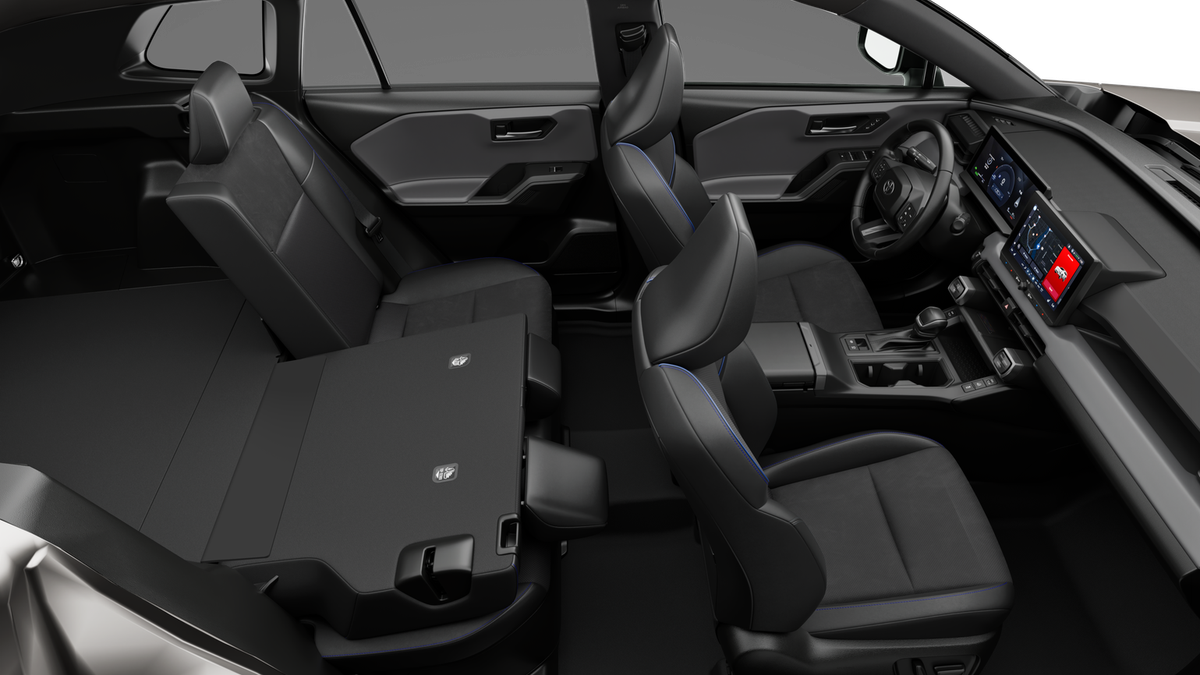 , SAFETY FEATURES, AUDIO FEATURES, COMFORT AND CONVENIENCE, EXTERIOR FEATURES, ADDITIONAL FEATURES, AWD, Blackblue Softe Artificial Leather. Weather Package (Heated Leather Steering Wheel, Rain Sensing Windshield Wipers, and Windshield De-Icer), AWD, Blackblue Softe Artificial Leather, 4-Wheel Disc Brakes, 6 Speakers, ABS brakes, Air Conditioning, All Weather Floor Liner and Cargo Tray, Alloy wheels, AM/FM radio: SiriusXM with 360L, Apple CarPlay/Android Auto, Auto High-beam Headlights, Auto-dimming Rear-View mirror, Automatic temperature control, Brake assist, Bumpers: body-color, Delay-off headlights, Driver door bin, Driver vanity mirror, Dual front impact airbags, Dual front side impact airbags, Electronic Stability Control, Emergency communication system: Safety Connect (5-year trial), Exterior Parking Camera Rear, Fog Light Accent Graphic - Matte Black, Four wheel independent suspension, Front anti-roll bar, Front Bucket Seats, Front Center Armrest, Front dual zone A/C, Front fog lights, Front reading lights, Fully automatic headlights, Garage door transmitter: HomeLink, Heated door mirrors, Heated front seats, Heated/Ventilated Front Bucket Seats, Illuminated entry, Illuminated Front Emblem, JBL Premium Audio with 9 Speakers, Key Gloves, Knee airbag, Leather Shift Knob, Leather steering wheel, Low Profile Cross Bars (TMS), Low tire pressure warning, Memory seat, Multimedia Glass Screen Protector, Navigation system: Drive Connect (1 year trial) includes Cloud Navigation with real time traffic and Google POI, Occupant sensing airbag, Outside temperature display, Overhead airbag, Overhead console, Panic alarm, Passenger door bin, Passenger vanity mirror, Power door mirrors, Power driver seat, Power Liftgate, Power moonroof, Power passenger seat, Power steering, Power windows, Radio data system, Radio: 12.9 Toyota Audio Multimedia with 6 Speakers, Rear anti-roll bar, Rear seat center armrest, Rear window defroster, Rear window wiper, Remote keyless entry, Security system, SofTex/Synthetic Suede Seat Trim, Speed control, Speed-sensing steering, Split folding rear seat, Spoiler, Steering wheel mounted audio controls, Telescoping steering wheel, Tilt steering wheel, Traction control, Trip computer, Turn signal indicator mirrors, Variably intermittent wipers, Ventilated front seats, and Wheels: 20 Multi-Spoke Black Sport Alloy. 45/39 City/Highway MPG