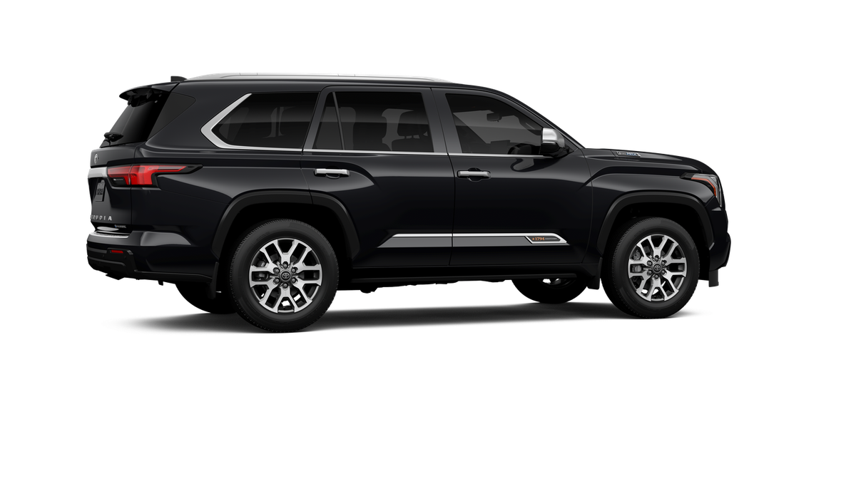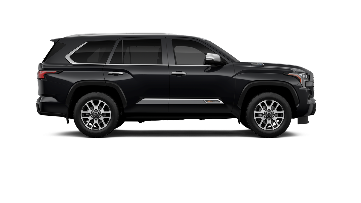 - Bright-chrome "SEQUOIA" rear door badge, chrome "1794 EDITION" door badge and garnish, door handles, window molding and mirror caps; color-keyed tailgate spoiler; black-painted overfenders