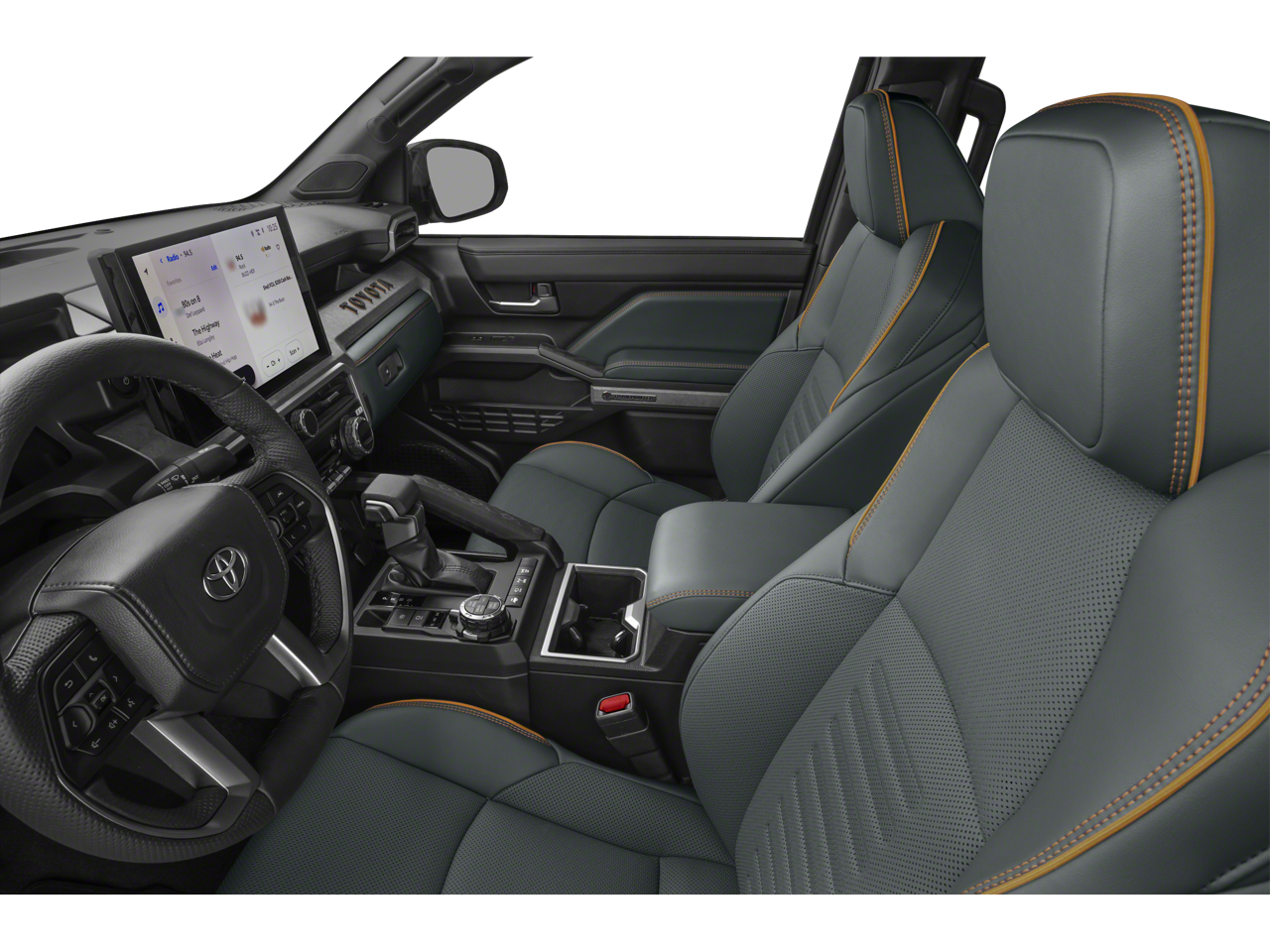 , SAFETY FEATURES, AUDIO FEATURES, COMFORT AND CONVENIENCE, EXTERIOR FEATURES, ADDITIONAL FEATURES, 2.4L 4-Cylinder. Tow Tech Package, 2.4L 4-Cylinder, 3.583 Axle Ratio, 4-Wheel Disc Brakes, 9 Speakers, ABS brakes, Air Conditioning, Alloy wheels, AM/FM radio: SiriusXM, Anti-whiplash front head restraints, Apple CarPlay/Android Auto, Auto High-beam Headlights, Auto-dimming Rear-View mirror, Automatic temperature control, Bed Mat, Black Badge Overlay, Brake assist, Bumpers: body-color, Driver door bin, Driver vanity mirror, Dual front impact airbags, Dual front side impact airbags, Electronic Stability Control, Emergency communication system: Safety Connect (up to 10-year trial subscription), Exterior Parking Camera Rear, Four wheel independent suspension, Front anti-roll bar, Front Bucket Seats, Front Center Armrest, Front dual zone A/C, Front fog lights, Front reading lights, Fully automatic headlights, Garage door transmitter: HomeLink, Gunmetal Tailgate Insert, Heated and Ventilated Front Bucket Seats, Heated door mirrors, Heated front seats, Heated steering wheel, Illuminated entry, JBL Premium Audio, Knee airbag, Leather Shift Knob, Leather steering wheel, Low tire pressure warning, Multimedia Glass Screen Protector, Navigation system: Drive Connect Cloud Navigation (1-year trial subscription), Occupant sensing airbag, Outside temperature display, Overhead airbag, Overhead console, Panic alarm, Passenger door bin, Passenger vanity mirror, Power door mirrors, Power driver seat, Power passenger seat, Power steering, Power windows, Radio: 14 Toyota Audio Multimedia, Rear anti-roll bar, Rear step bumper, Rear window defroster, Remote keyless entry, Security system, SofTex Seat Trim, Speed control, Speed-sensing steering, Split folding rear seat, Steering wheel mounted audio controls, Tachometer, Telescoping steering wheel, Tilt steering wheel, Traction control, Trip computer, Turn signal indicator mirrors, Variably intermittent wipers, Ventilated front seats, and Wheels: 18 Bronze-Finished Trailhunter Alloy.