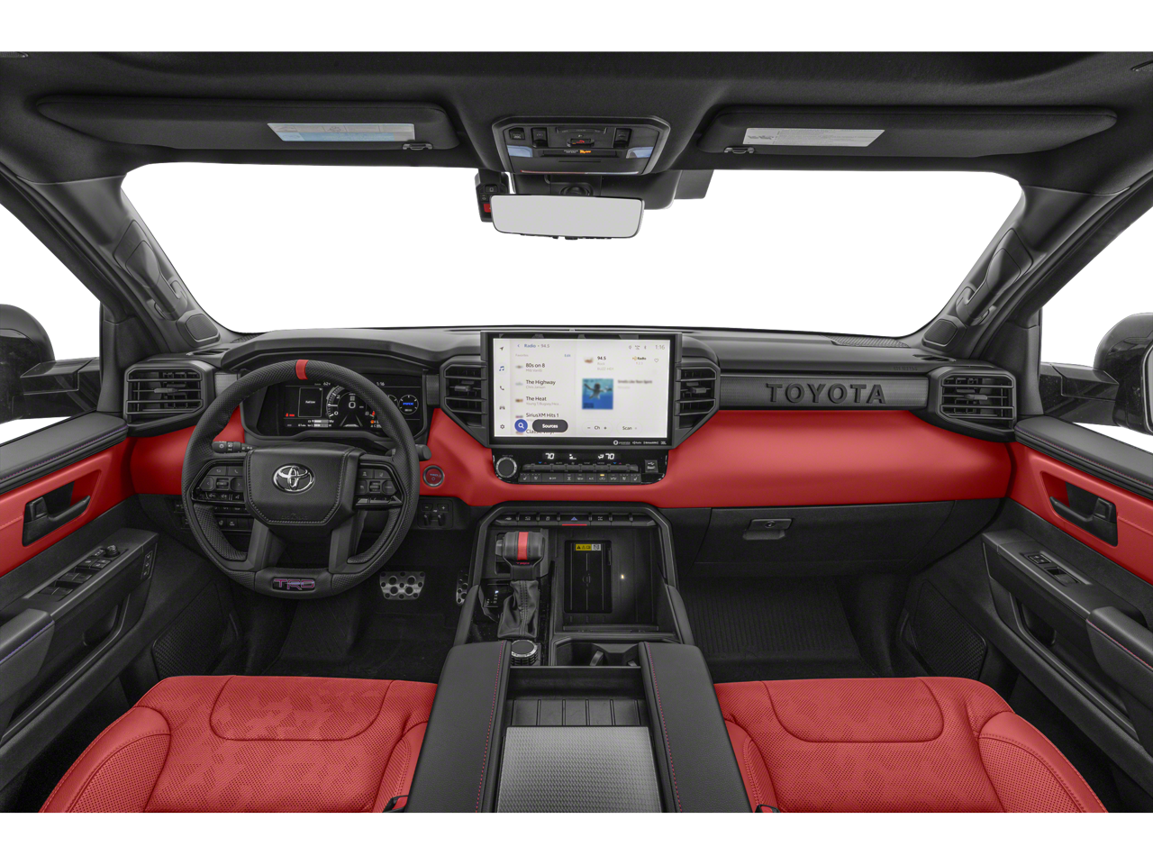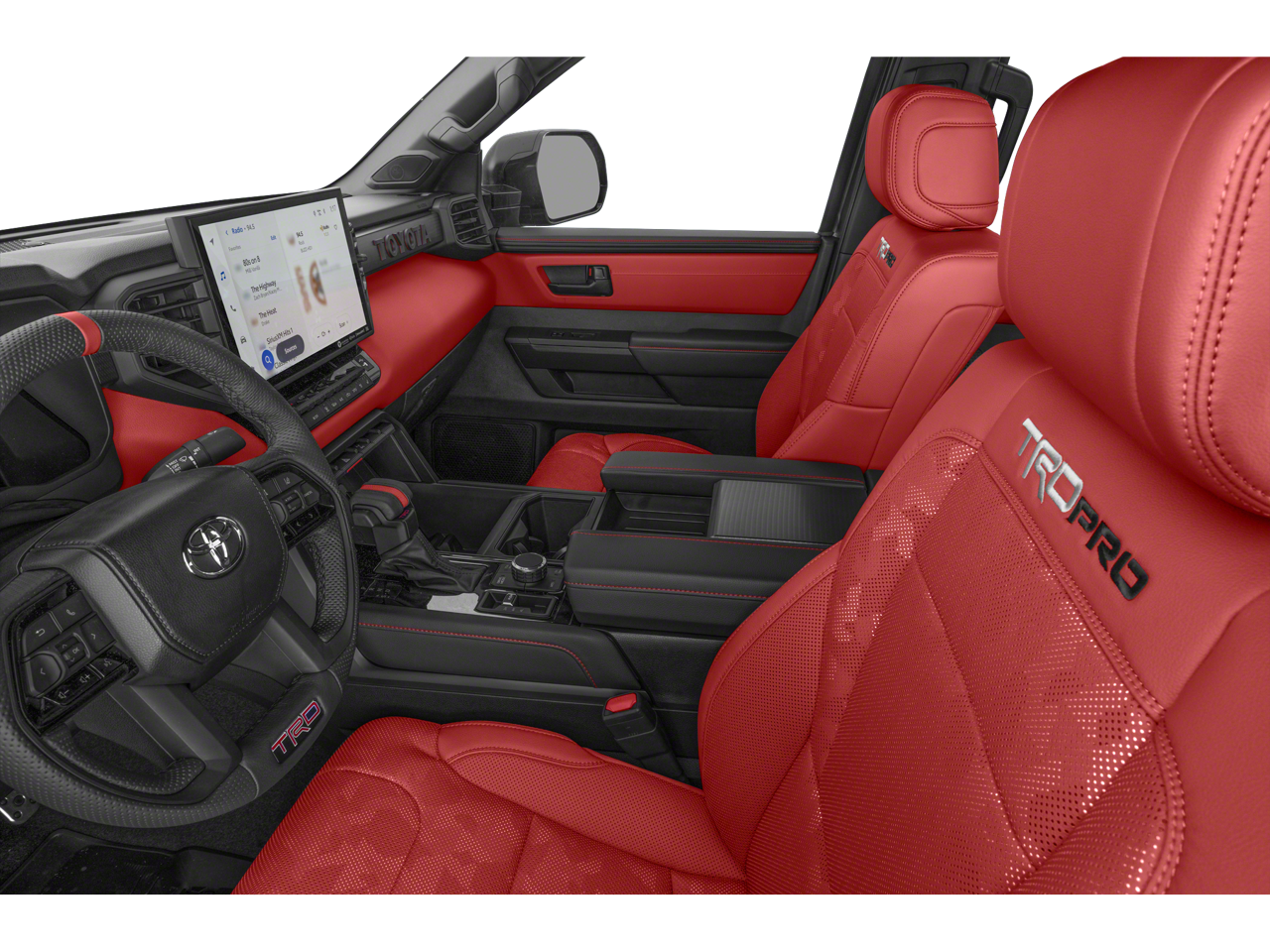 , SAFETY FEATURES, AUDIO FEATURES, COMFORT AND CONVENIENCE, EXTERIOR FEATURES, ADDITIONAL FEATURES, 3.4L V6. TRD Pro Package, 3.4L V6, 12 Speakers, 3.31 Axle Ratio, 4-Wheel Disc Brakes, ABS brakes, Air Conditioning, Alloy wheels, AM/FM radio: SiriusXM, Apple CarPlay/Android Auto, Auto High-beam Headlights, Auto-dimming door mirrors, Auto-dimming Rear-View mirror, Automatic temperature control, Badge Overlays - Wave Maker, Bed Step, Brake assist, Bumpers: body-color, Delay-off headlights, Driver door bin, Driver vanity mirror, Dual front impact airbags, Dual front side impact airbags, Electronic Stability Control, Emergency communication system: Safety Connect (up to 10-year trial subscription), Exclusive MY Paint Color, Exterior Parking Camera Rear, Front anti-roll bar, Front Bucket Seats, Front Center Armrest, Front dual zone A/C, Front fog lights, Front reading lights, Front wheel independent suspension, Fully automatic headlights, Garage door transmitter: HomeLink, Heated and Ventilated Front Bucket Seats, Heated door mirrors, Heated front seats, Illuminated entry, Knee airbag, Leather Shift Knob, Leather steering wheel, Low tire pressure warning, Memory seat, Multimedia Glass Screen Protector, Navigation system: Drive Connect Cloud Navigation (1-year trial subscription), Occupant sensing airbag, Outside temperature display, Overhead airbag, Overhead console, Panic alarm, Passenger door bin, Passenger vanity mirror, Power door mirrors, Power driver seat, Power moonroof, Power passenger seat, Power steering, Power windows, Radio data system, Radio: Premium Audio with JBL, Rear reading lights, Rear seat center armrest, Rear step bumper, Rear window defroster, Remote keyless entry, Security system, SofTex Seat Trim, Speed control, Speed-sensing steering, Split folding rear seat, Sport steering wheel, Steering wheel mounted audio controls, Tachometer, Telescoping steering wheel, Tilt steering wheel, Traction control, TRD Cast Aluminum Running Board, TRD Pro Reflective Bed Lettering, Tri-Fold Tonneau Cover, Trip computer, Turn signal indicator mirrors, Variably intermittent wipers, Ventilated front seats, Voltmeter, and Wheels: 18 Black Forged Aluminum BBS.