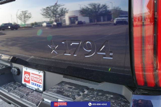 , SAFETY FEATURES, AUDIO FEATURES, COMFORT AND CONVENIENCE, EXTERIOR FEATURES, ADDITIONAL FEATURES, 4WD, Saddle Tan Leat Leather. 1794 Grade Package (Chrome Exhaust Tail Pipe & Diffuser), 4WD, Saddle Tan Leat Leather, 10-Way Power Adjustable Heated and Ventilated Front Seats, 12 Speakers, 3.31 Axle Ratio, 4-Wheel Disc Brakes, ABS brakes, Air Conditioning, Alloy wheels, AM/FM radio: SiriusXM, Apple CarPlay/Android Auto, Auto High-beam Headlights, Auto-dimming door mirrors, Auto-dimming Rear-View mirror, Automatic temperature control, Blind Spot Monitor, Brake assist, Bumpers: body-color, Chrome Plated Power Folding Outside Mirrors, Compass, Delay-off headlights, Driver door bin, Driver vanity mirror, Dual front impact airbags, Dual front side impact airbags, Electronic Stability Control, Emergency communication system: Safety Connect (up to 10-year trial subscription), Exterior Parking Camera Rear, Front anti-roll bar, Front Bucket Seats, Front Center Armrest, Front dual zone A/C, Front fog lights, Front reading lights, Front wheel independent suspension, Fully automatic headlights, Garage door transmitter: HomeLink, Head Up Display (HUD), Heated door mirrors, Heated front seats, Heated rear seats, Heated steering wheel, Illuminated entry, Knee airbag, Leather Shift Knob, Leather steering wheel, Low tire pressure warning, Memory seat, Multi-Terrain Back Monitor, Multimedia Glass Screen Protector, Navigation system: Drive Connect Cloud Navigation (1-year trial subscription), Occupant sensing airbag, Outside temperature display, Overhead airbag, Overhead console, Panic alarm, Panoramic View Back Monitor, Passenger door bin, Passenger vanity mirror, Power door mirrors, Power driver seat, Power moonroof, Power passenger seat, Power Running Boards, Power steering, Power windows, Premium Leather Seat Trim, Radio data system, Radio: Premium Audio, Rain sensing wipers, Rear reading lights, Rear seat center armrest, Rear step bumper, Rear window defroster, Remote keyless entry, Safety Connect, Security system, Speed control, Speed-sensing steering, Speed-Sensitive Wipers, Split folding rear seat, Steering wheel memory, Steering wheel mounted audio controls, Tachometer, Telescoping steering wheel, Tilt steering wheel, Traction control, Tri-Fold Tonneau Cover, Trip computer, Turn signal indicator mirrors, Variably intermittent wipers, Ventilated front seats, Ventilated rear seats, Voltmeter, and Wheels: 20 Machined Finish Alloy.