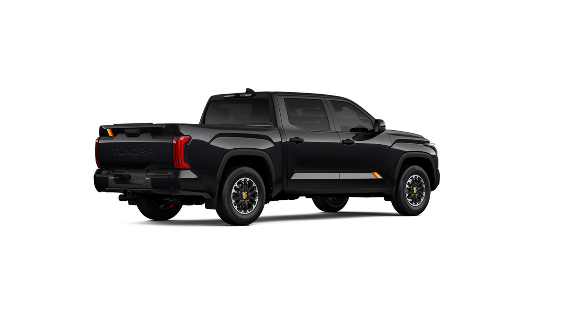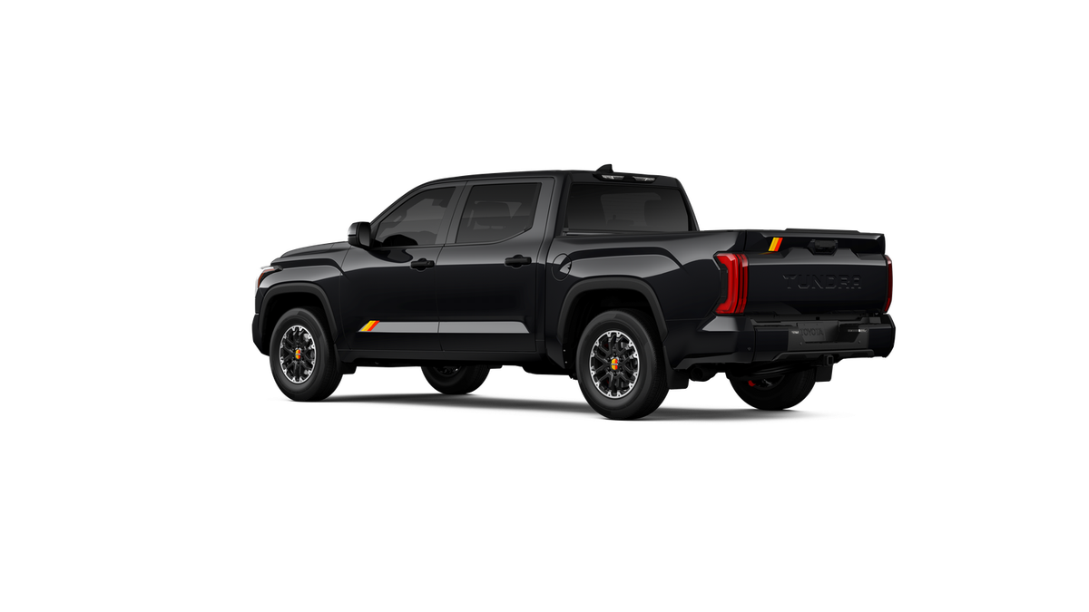 - Chrome "TUNDRA" and "SR5" door badges; black door handles, window molding, mirror caps, tailgate spoiler and overfenders