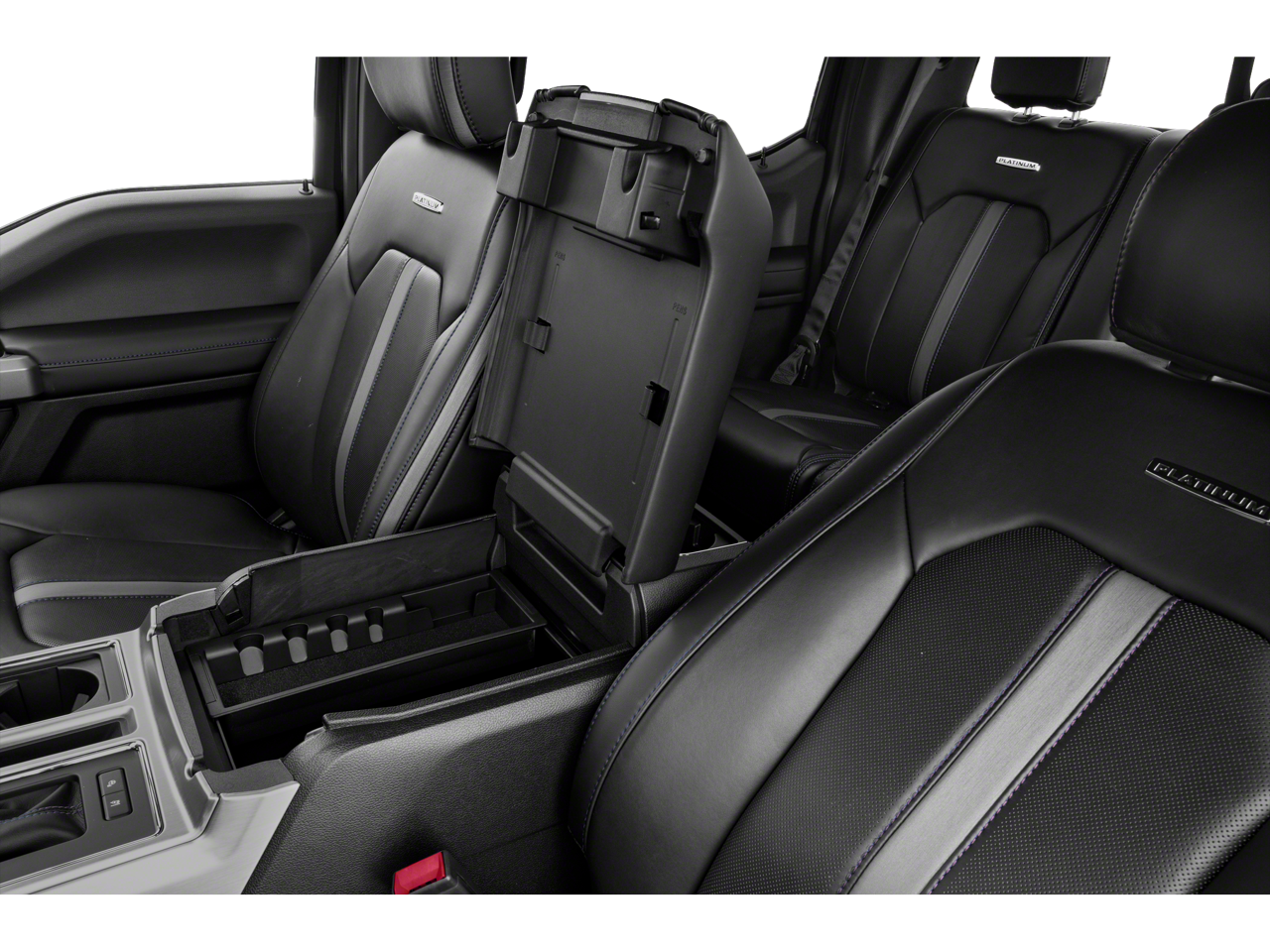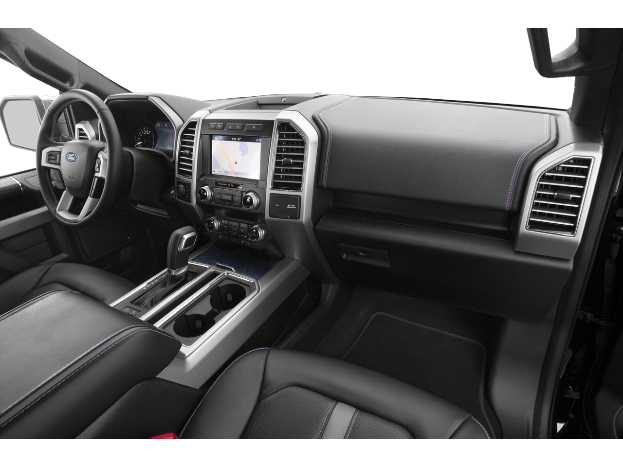 , SAFETY FEATURES, AUDIO FEATURES, COMFORT AND CONVENIENCE, EXTERIOR FEATURES, ADDITIONAL FEATURES, 4WD. Equipment Group 701A Luxury (Adaptive Cruise Control and Tailgate Step w/Tailgate Lift Assist), FX4 Off-Road Package (4x4 FX4 Off-Road Bodyside Decal, Hill Descent Control, and Off-Road Tuned Front Shock Absorbers), GVWR: 7,050 lbs Payload Package, Technology Package (Active Park Assist and Lane-Keeping System), Trailer Tow Package (Class IV Trailer Hitch Receiver, Higher-Capacity Radiator, Higher-Power Cooling Fans, Pro Trailer Backup Assist, and Upgraded Front Stabilizer Bar), 4WD, 10 Speakers, 20 Polished Aluminum Wheels, 4-Wheel Disc Brakes, ABS brakes, Adjustable pedals, Air Conditioning, All-Weather Rubber Floor Mats, Alloy wheels, AM/FM radio: SiriusXM, AppLink/Apple CarPlay and Android Auto, Auto High-beam Headlights, Auto tilt-away steering wheel, Auto-dimming door mirrors, Auto-dimming Rear-View mirror, Automatic temperature control, Black Unique Multi-Contour Leather Bucket Seats, Box Side Steps, Brake assist, Bumpers: body-color, CD player, Compass, Delay-off headlights, Driver door bin, Driver vanity mirror, Dual front impact airbags, Dual front side impact airbags, Electronic Stability Control, Emergency communication system: SYNC 3 911 Assist, Exterior Parking Camera Rear, Front anti-roll bar, Front Bucket Seats, Front Center Armrest, Front dual zone A/C, Front fog lights, Front reading lights, Front wheel independent suspension, Fully automatic headlights, Garage door transmitter, Genuine wood door panel insert, Heated door mirrors, Heated front seats, Heated rear seats, Heated steering wheel, Illuminated entry, Integrated Trailer Brake Controller, Low tire pressure warning, Memory seat, Navigation System, Occupant sensing airbag, Outside temperature display, Overhead airbag, Overhead console, Panic alarm, Passenger door bin, Passenger vanity mirror, Pedal memory, Power door mirrors, Power driver seat, Power passenger seat, Power steering, Power windows, Radio data system, Radio: B&O Play Premium Audio System, Rain sensing wipers, Rear Parking Sensors, Rear reading lights, Rear seat center armrest, Rear step bumper, Rear window defroster, Remote keyless entry, Security system, Speed control, Speed-sensing steering, Split folding rear seat, Spray-In Bedliner (Pre-Installed), Steering wheel memory, Steering wheel mounted audio controls, SYNC 3, Tachometer, Telescoping Power Glass Trailer Tow Mirrors w/Heat, Telescoping steering wheel, Tilt steering wheel, Traction control, Trip computer, Turn signal indicator mirrors, Twin Panel Moonroof, Variably intermittent wipers, Ventilated front seats, Voice-Activated Touchscreen Navigation System, and Voltmeter.