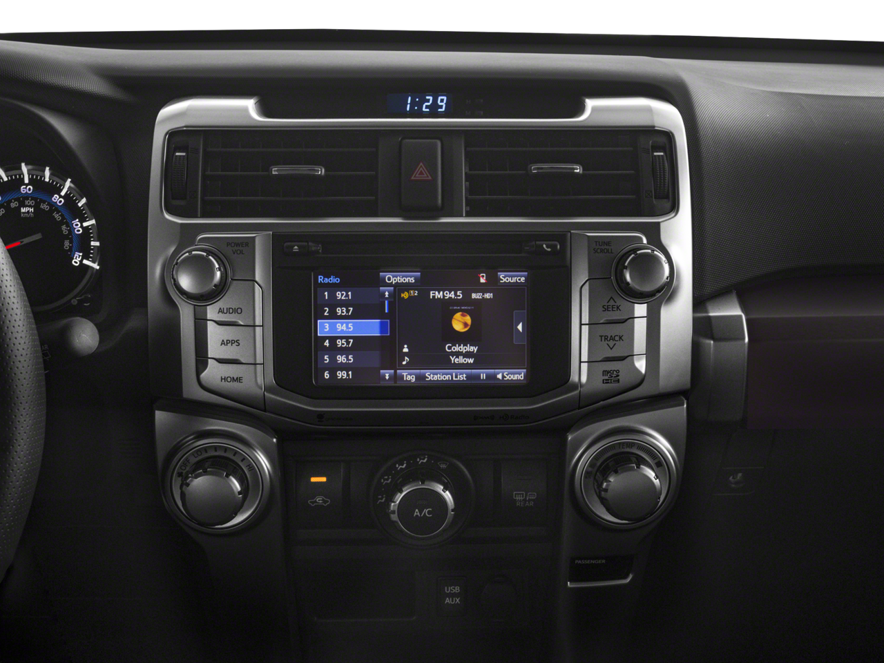 - Radio: Entune Premium Audio w/Navigation -inc: Entune Multimedia bundle (6.1" high resolution touch-screen w/split screen display, AM/FM CD player w/MP3/WMA playback capability, 8 speakers, auxiliary audio jack, USB 2.0 port w/iPod connectivity and control, advanced voice recognition, hands-free phone capability, phone book access and music streaming via Bluetooth® wireless technology), Siri Eyes Free, Entune AppSuite, HD Radio, HD Radio predictive traffic and Doppler weather overlay, AM/FM cache radio, SiriusXM satellite radio w/3-month complimentary all access trial, Gracenote album cover art and integrated backup camera display w/projected path, Entune App Suite includes Destination Search, iHeartRadio, MovieTickets.com, OpenTable, Pandora, Facebook Places, Yelp and Slacker Radio; real-time info including traffic, weather, fuel prices, sports and stocks Access to Entune services is subscription free. See toyota.com/entune for details.
