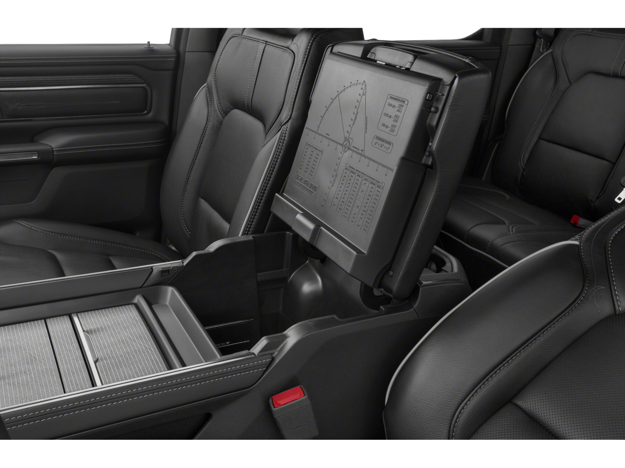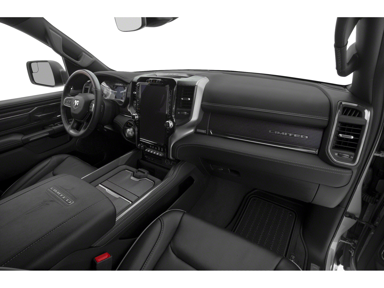 , SAFETY FEATURES, AUDIO FEATURES, COMFORT AND CONVENIENCE, EXTERIOR FEATURES, ADDITIONAL FEATURES. Advanced Safety Group (Adaptive Cruise Control w/Stop & Go, Advanced Brake Assist, Full Speed Forward Collision Warning Plus, Lane Keep Assist, and Parallel & Perp Park Assist w/Stop), Bed Utility Group, Quick Order Package 25M Limited, 1-Yr SiriusXM Guardian Trial, 10 Speakers, 12 Touchscreen Display, 33 Gallon Fuel Tank, 4-Wheel Disc Brakes, 48V Belt Starter Generator, ABS brakes, Adjustable pedals, Air Conditioning, Alloy wheels, AM/FM radio: SiriusXM with 360L, Apple CarPlay, Apple CarPlay/Android Auto, Audio memory, Auto High-beam Headlights, Auto-dimming door mirrors, Auto-dimming Rear-View mirror, Auto-leveling suspension, Automatic temperature control, Bodyside moldings, Brake assist, Bumpers: chrome, Compass, Delay-off headlights, Disassociated Touchscreen Display, Dome Dual LED Reading Lamp, Driver door bin, Driver vanity mirror, Dual front impact airbags, Dual front side impact airbags, Dual-Pane Panoramic Sunroof, E-Locker Rear Axle, Electronic Stability Control, Emergency communication system: SiriusXM Guardian, Front anti-roll bar, Front Bucket Seats, Front Center Armrest w/Storage, Front dual zone A/C, Front fog lights, Front reading lights, Front wheel independent suspension, Fully automatic headlights, Garage door transmitter, Genuine wood console insert, Genuine wood dashboard insert, Genuine wood door panel insert, Google Android Auto, GPS Antenna Input, GPS Navigation, HD Radio, Heated door mirrors, Heated front seats, Heated rear seats, Heated steering wheel, Illuminated entry, Integrated Center Stack Radio, Leather steering wheel, LED Dome/Reading Lamp, Low tire pressure warning, Memory seat, Navigation System, Occupant sensing airbag, Outside temperature display, Overhead airbag, Overhead console, Panic alarm, ParkView Rear Back-Up Camera, Passenger door bin, Passenger vanity mirror, Pedal memory, Power door mirrors, Power driver seat, Power passenger seat, Power steering, Power windows, Premium Leather Trimmed Bucket Seats, Radio data system, Radio: Uconnect 12 w/Navigation, Rain sensing wipers, RamBox Cargo Management System, Rear anti-roll bar, Rear seat center armrest, Rear step bumper, Rear window defroster, Remote CD player, Remote keyless entry, Security system, SiriusXM Satellite Radio, SiriusXM Traffic Plus, SiriusXM Travel Link, SiriusXM w/360L, Speed control, Split folding rear seat, Steering wheel mounted audio controls, Tachometer, Telescoping steering wheel, Tilt steering wheel, Traction control, Trip computer, Turn signal indicator mirrors, USB Host Flip, Variably intermittent wipers, Ventilated front seats, Voltmeter, Wheels: 20 x 9 Polished w/Inserts, and Wheels: 22 x 9 Polish/Painted w/Inserts.
