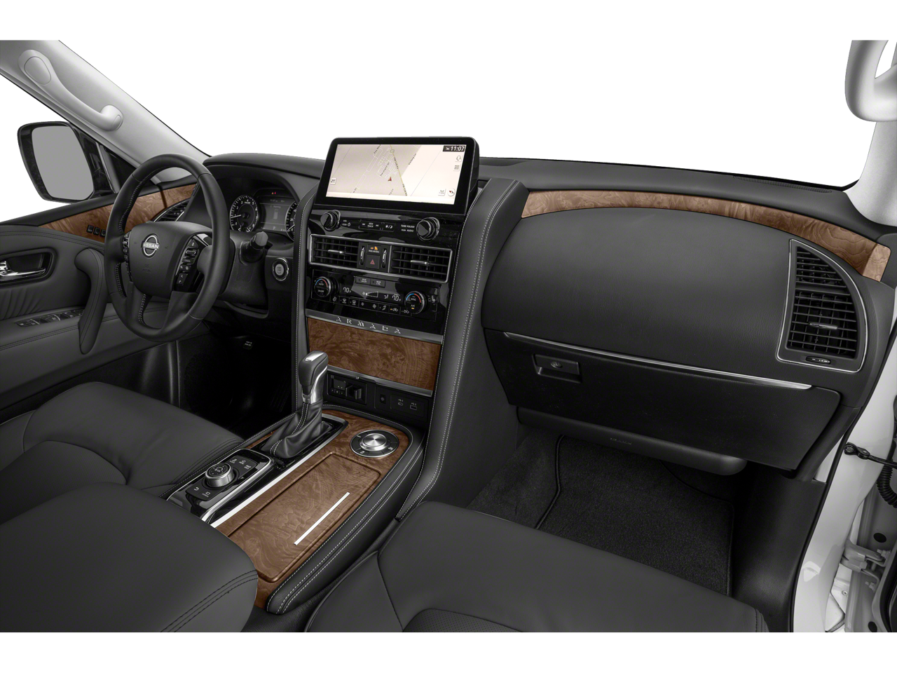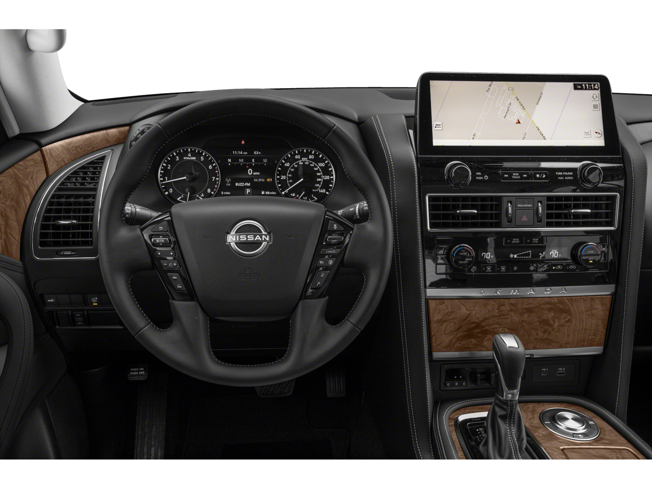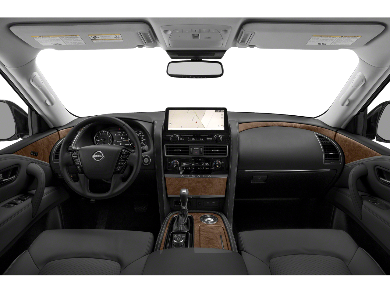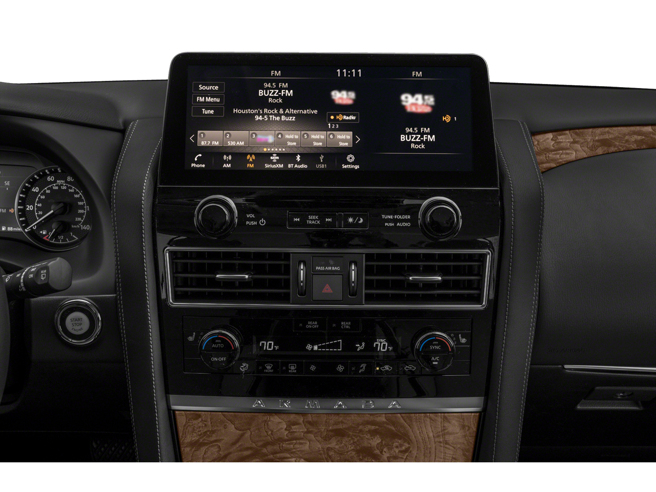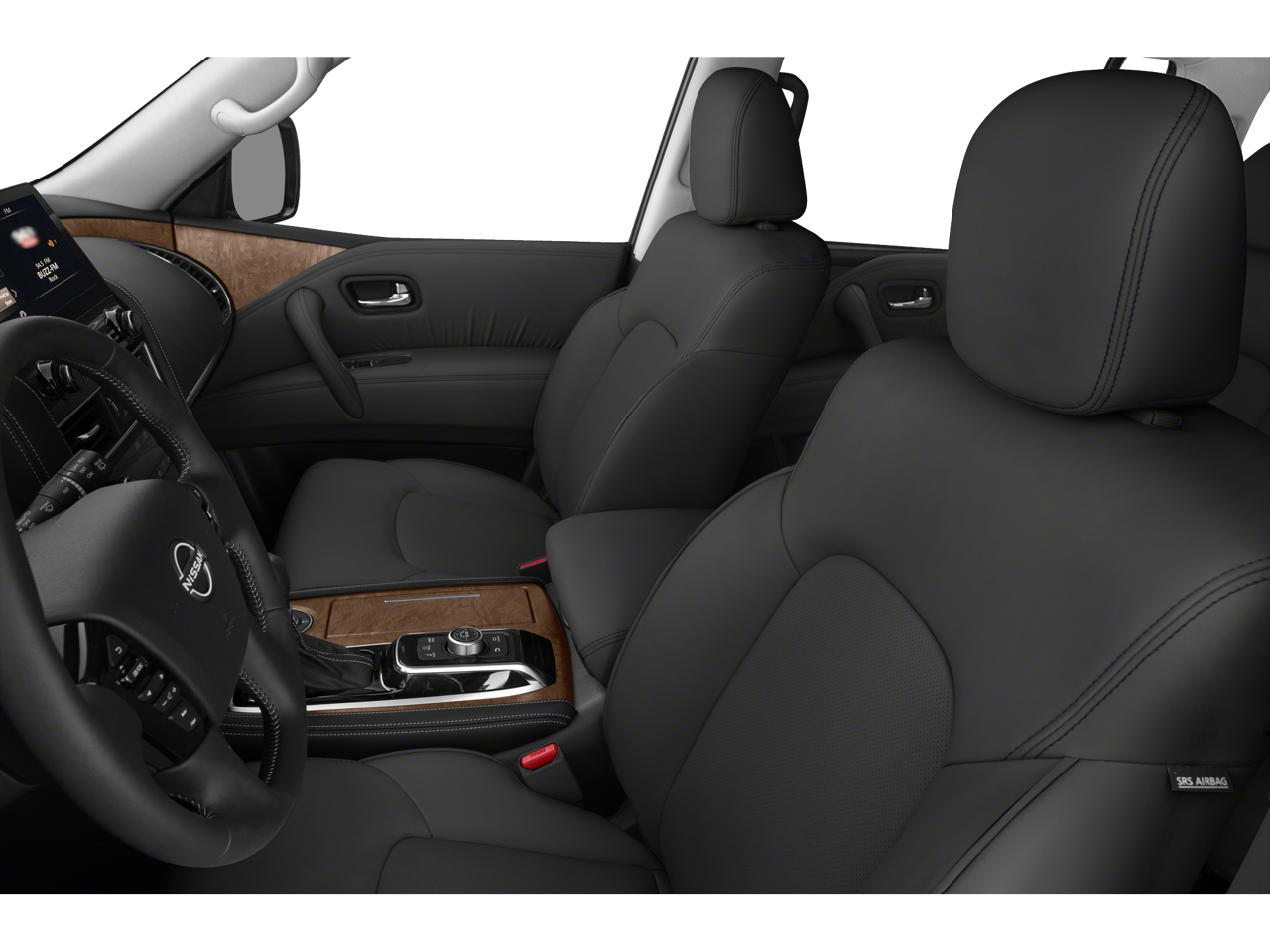 , SAFETY FEATURES, AUDIO FEATURES, COMFORT AND CONVENIENCE, EXTERIOR FEATURES, ADDITIONAL FEATURES. Captain's Chairs Package (2nd Row Captain's Chairs and 2nd Row Center Console w/Padded Armrest), Cargo Package, 13 Speakers, 2.94 Axle Ratio, 3rd Row Carpeted Floor Mats - Captain Seat, 3rd row seats: split-bench, 4-Wheel Disc Brakes, ABS brakes, Air Conditioning, Alloy wheels, AM/FM radio: SiriusXM, Anti-whiplash front head restraints, Auto High-beam Headlights, Auto tilt-away steering wheel, Auto-dimming door mirrors, Auto-dimming Rear-View mirror, Auto-leveling suspension, Automatic temperature control, Brake assist, Bumpers: body-color, Delay-off headlights, Driver door bin, Driver vanity mirror, Dual front impact airbags, Dual front side impact airbags, Electronic Stability Control, Emergency communication system: NissanConnect Services, Exterior Parking Camera Rear, Four wheel independent suspension, Front anti-roll bar, Front Bucket Seats, Front Center Armrest, Front dual zone A/C, Front fog lights, Front reading lights, Fully automatic headlights, Garage door transmitter: HomeLink, Heated door mirrors, Heated Front Bucket Seats, Heated front seats, Illuminated entry, Illuminated Kick Plates, Knee airbag, Leather Shift Knob, Leather-Appointed Seat Trim, Low tire pressure warning, Memory seat, Navigation System, NissanConnect featuring Apple CarPlay and Android Auto, Occupant sensing airbag, Outside temperature display, Overhead airbag, Overhead console, Panic alarm, Passenger door bin, Passenger vanity mirror, Power door mirrors, Power driver seat, Power Liftgate, Power moonroof, Power passenger seat, Power steering, Power windows, Radio: NissanConnect w/SiriusXM, Rear air conditioning, Rear anti-roll bar, Rear reading lights, Rear seat center armrest, Rear window defroster, Rear window wiper, Reclining 3rd row seat, Remote keyless entry, Roof Rail Cross Bars, Security system, Speed control, Speed-sensing steering, Speed-Sensitive Wipers, Split folding rear seat, Spoiler, Steering wheel memory, Steering wheel mounted audio controls, Tachometer, Telescoping steering wheel, Tilt steering wheel, Traction control, Trip computer, Turn signal indicator mirrors, Variably intermittent wipers, Voltmeter, and Wheels: 20 x 8J Painted Alloy.