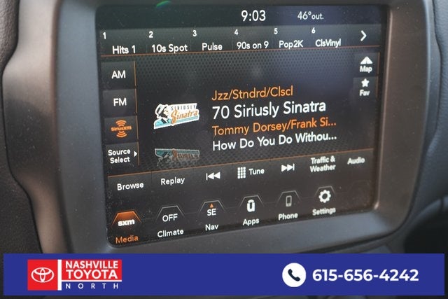 , SAFETY FEATURES, AUDIO FEATURES, COMFORT AND CONVENIENCE, EXTERIOR FEATURES, ADDITIONAL FEATURES. Quick Order Package 22B, 17 x 7.0 Aluminum Wheels, 3.734 Final Drive Ratio, 4-Wheel Disc Brakes, 6 Speakers, ABS brakes, Air Conditioning, Alloy wheels, AM/FM radio: SiriusXM, Anti-whiplash front head restraints, Apple CarPlay/Android Auto, Automatic temperature control, Brake assist, Cloth Bucket Seats, Compass, Delay-off headlights, Driver door bin, Driver vanity mirror, Dual front impact airbags, Dual front side impact airbags, Electronic Stability Control, Emergency communication system: SiriusXM Guardian, Four wheel independent suspension, Front anti-roll bar, Front Bucket Seats, Front Center Armrest, Front dual zone A/C, Front reading lights, Heated door mirrors, Illuminated entry, Knee airbag, Low tire pressure warning, Navigation System, Normal Duty Suspension, Occupant sensing airbag, Outside temperature display, Overhead airbag, ParkView Rear Back-Up Camera, Passenger door bin, Passenger vanity mirror, Power door mirrors, Power steering, Power windows, Radio data system, Radio: Uconnect 4C Nav w/8.4 Display, Rear anti-roll bar, Rear window defroster, Rear window wiper, Remote keyless entry, Roof rack: rails only, Security system, Speed control, Split folding rear seat, Spoiler, Steering wheel mounted audio controls, Tachometer, Telescoping steering wheel, Tilt steering wheel, Traction control, Trip computer, Variably intermittent wipers, and Voltmeter.
