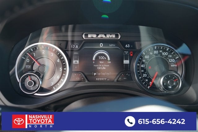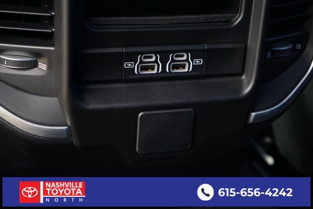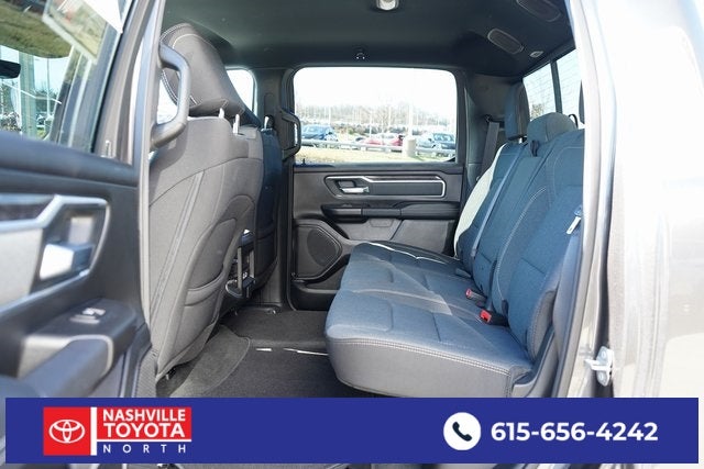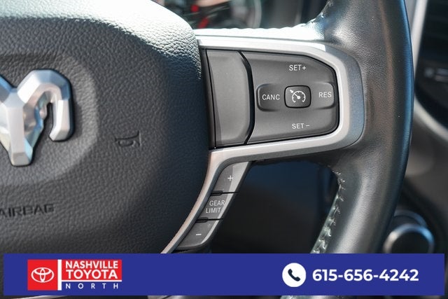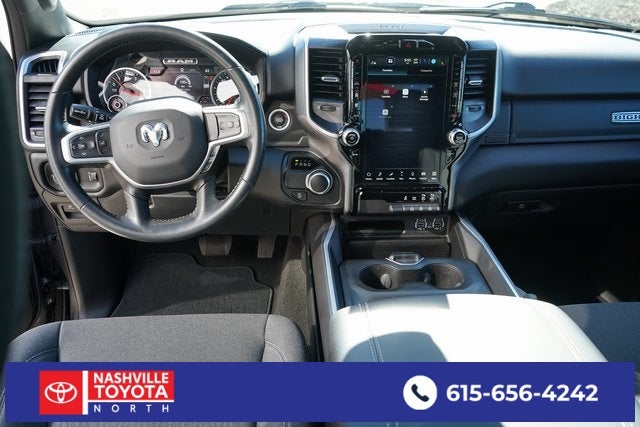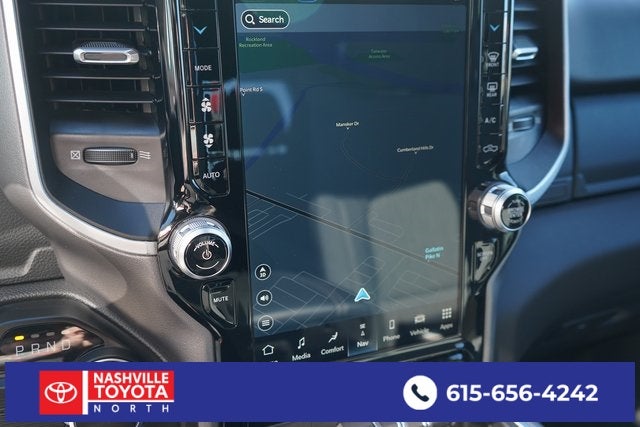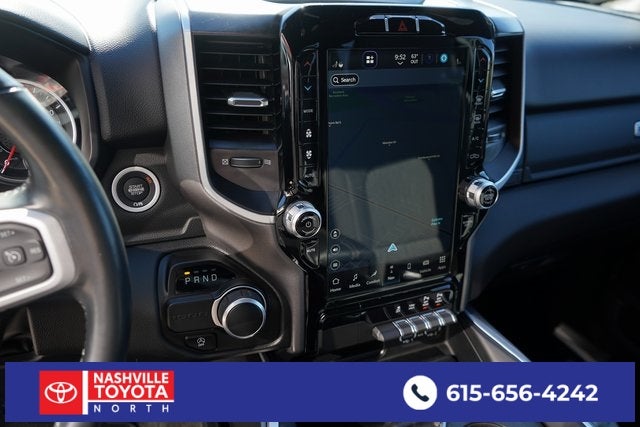 , SAFETY FEATURES, AUDIO FEATURES, COMFORT AND CONVENIENCE, EXTERIOR FEATURES, ADDITIONAL FEATURES. Big Horn Level B Equipment Group (115V Auxiliary Power Outlet, 12 Touchscreen Display, 2nd Row In Floor Storage Bins, 400W Inverter, 4G LTE Wi-Fi Hot Spot, 9 Amplified Speakers w/Subwoofer, Air Conditioning ATC w/Dual Zone Control, All R1 High Radios, All Radio Equipped Vehicles, Apple CarPlay, Auto-Dimming Exterior Driver Mirror, Auto-Dimming Rear-View Mirror, Black Exterior Mirrors, Black Premium Power Mirrors, Class IV Receiver Hitch, Cluster 7.0 TFT Color Display, Connected Travel & Traffic Services, Connectivity - US/Canada, Convex Wide-Angle Exterior Mirror Insert, Disassociated Touchscreen Display, Exterior Mirrors Courtesy Lamps, Exterior Mirrors w/Heating Element, Exterior Mirrors w/Supplemental Signals, For Details, Visit DriveUconnect.com, For More Info, Call 800-643-2112, Front Fog Lamps, Global Telematics Box Module (TBM), Glove Box Lamp, Google Android Auto, GPS Antenna Input, GPS Navigation, HD Radio, Heated Front Seats, Heated Steering Wheel, Integrated Center Stack Radio, Integrated Voice Command w/Bluetooth®, LED Footwell Lighting, Media Hub w/2 Charge Only USBs, ParkSense Front/Rear Park Assist w/Stop, Power 2-Way Driver Lumbar Adjust, Power 8-Way Driver Seat, Power Adjustable Pedals, Power-Folding Mirrors, Radio: Uconnect 5 Nav w/12.0 Display, Rear Dome w/On/Off Switch Lamp, Rear Power Sliding Window, Rear Window Defroster, Remote Start System, Security Alarm, SiriusXM Radio Service, SiriusXM Satellite Radio, SiriusXM w/360L, Sun Visors w/Illuminated Vanity Mirrors, Universal Garage Door Opener, and USB Host Flip), Night Edition (3 Rear Seat Head Restraints, 4 Way Front Headrests, Accent Color Door Handles, Accent Color Premium Power Mirrors, Anti-Spin Differential Rear Axle, Black Exterior Truck Badging, Black Headlamp Bezels, Black Interior Accents, Black Painted Exterior Mirrors Caps, Body Color Front Bumper, Body Color Rear Bumper w/Step Pads, Bucket Seats, Center Console Parts Module, Deluxe Cloth Bucket Seats, Dual Exhaust w/Black Tips, Front Seat Back Map Pockets, Full Length Floor Console, Grille Surround 1 Black Texture 2 Black, Manual Adjust 4-Way Front Passenger Seat, RAM Grille Badge - Black, Rear 60/40 Folding Seat, Rear Center Armrest, and Wheels: 20 x 9.0 Premium Paint/Polished), Quick Order Package 27Z Big Horn (Big Horn Badge), 3.21 Rear Axle Ratio, 4-Wheel Disc Brakes, 48V Belt Starter Generator, 6 Speakers, ABS brakes, Air Conditioning, Alloy wheels, AM/FM radio, Brake assist, Bumpers: chrome, Cloth Bench Seat, Compass, Delay-off headlights, Driver door bin, Dual front impact airbags, Dual front side impact airbags, Electronic Stability Control, Emergency communication system: SiriusXM Guardian, Exterior Parking Camera Rear, Front anti-roll bar, Front Center Armrest w/Storage, Front reading lights, Front wheel independent suspension, Fully automatic headlights, Heated door mirrors, Illuminated entry, Leather steering wheel, Low tire pressure warning, Occupant sensing airbag, Outside temperature display, Overhead airbag, Overhead console, Panic alarm, Passenger door bin, Passenger vanity mirror, Power door mirrors, Power steering, Power windows, Radio data system, Radio: Uconnect 3 w/5 Display, RAM Grille Badge - Chrome, Rear anti-roll bar, Rear seat center armrest, Rear step bumper, Remote keyless entry, Speed control, Split folding rear seat, Steering wheel mounted audio controls, Tachometer, Telescoping steering wheel, Tilt steering wheel, Traction control, Trip computer, Variably intermittent wipers, Voltmeter, and Wheels: 18 x 8 Cast-Aluminum PainteD.