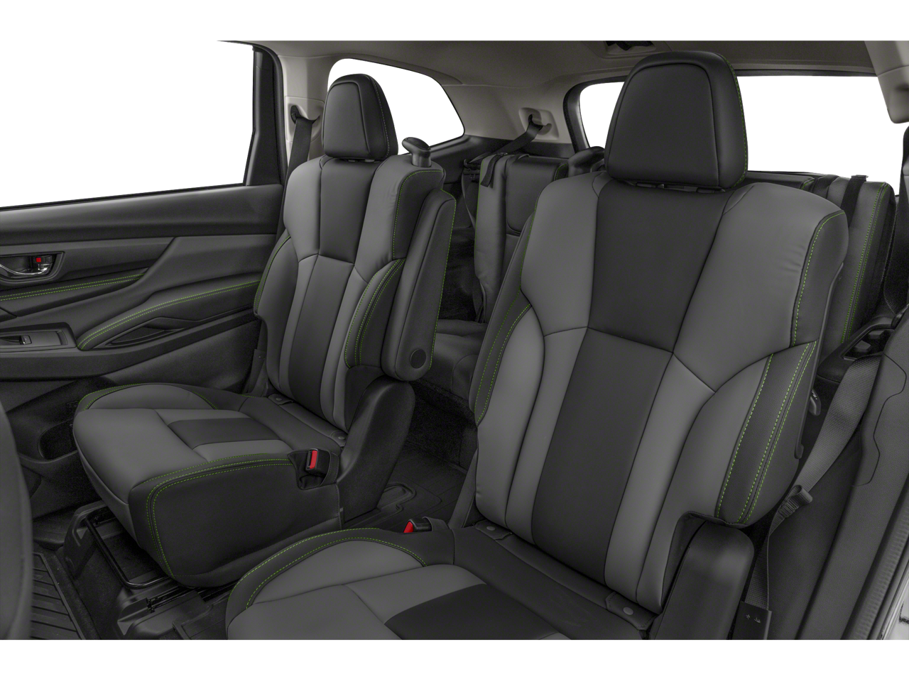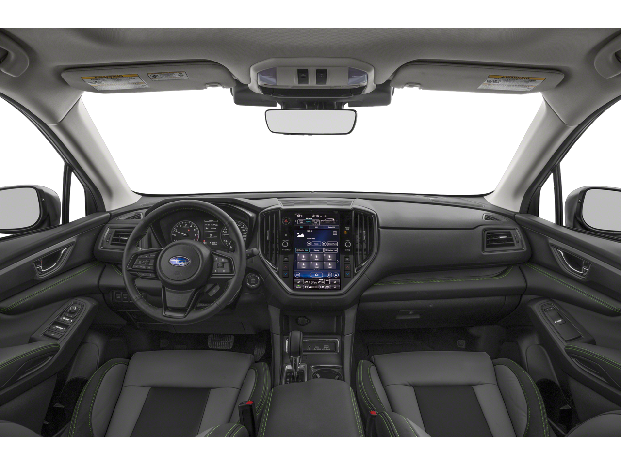 , SAFETY FEATURES, AUDIO FEATURES, COMFORT AND CONVENIENCE, EXTERIOR FEATURES, ADDITIONAL FEATURES. Standard Model, 3rd row seats: bench, 3rd Row Sunshade, 4-Wheel Disc Brakes, 6 Speakers, ABS brakes, Air Conditioning, All-Weather Floor Liners, Alloy wheels, AM/FM radio: SiriusXM, Auto High-beam Headlights, Auto-Dimming Exterior Mirror w/Approach Light, Auto-dimming Rear-View mirror, Automatic temperature control, Axle Ratio: 4.44, Brake assist, Bumpers: body-color, Compass, Delay-off headlights, Driver door bin, Driver vanity mirror, Dual front impact airbags, Dual front side impact airbags, Electronic Stability Control, Emergency communication system: STARLINK Safety and Security (Subscription Required), Exterior Parking Camera Rear, Four wheel independent suspension, Front anti-roll bar, Front Bucket Seats, Front Center Armrest, Front dual zone A/C, Front fog lights, Front reading lights, Fully automatic headlights, Garage door transmitter: HomeLink, Heated door mirrors, Heated Front Bucket Seats, Heated front seats, Heated steering wheel, Illuminated entry, Knee airbag, Leather Shift Knob, Leather steering wheel, LED Upgrade, Low tire pressure warning, Occupant sensing airbag, Outside temperature display, Overhead airbag, Overhead console, Panic alarm, Passenger door bin, Passenger vanity mirror, Power door mirrors, Power driver seat, Power Liftgate, Power moonroof, Power steering, Power windows, Radio data system, Radio: Subaru STARLINK 11.6 Multimedia Plus System, Rear air conditioning, Rear anti-roll bar, Rear reading lights, Rear window defroster, Rear window wiper, Reclining 3rd row seat, Remote keyless entry, Security system, Speed control, Speed-sensing steering, Split folding rear seat, Spoiler, STARLINK/Apple CarPlay/Android Auto, StarTex Upholstery, Steering wheel mounted audio controls, Tachometer, Telescoping steering wheel, Tilt steering wheel, Traction control, Trip computer, Turn signal indicator mirrors, Variably intermittent wipers, and Wheels: 20 x 7.5 J Aluminum Alloy w/Black Finish.