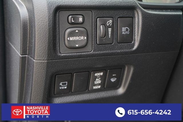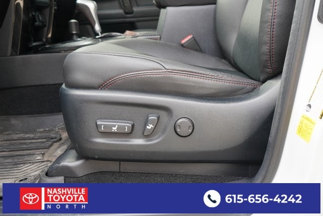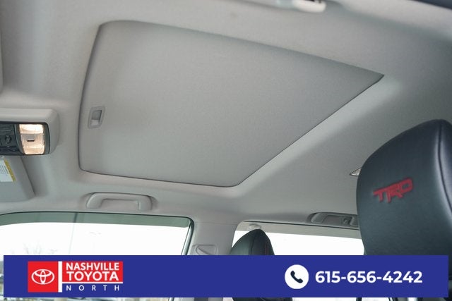 , SAFETY FEATURES, AUDIO FEATURES, COMFORT AND CONVENIENCE, EXTERIOR FEATURES, ADDITIONAL FEATURES, 4WD, Graphite Premium Synthetic. Dual Power Ports/Quick Charge Cable Package (TMS), Moonroof Package (Moonroof w/Tilt Up & Slide), Off Road Package (Black Roof Rails and Heated Outside Rear-View Mirrors), Off Road Premium Plus Package (Garage Door Opener and Multi-Terrain Back Monitor), TRD Black Wheel Package (TMS), 4WD, Graphite Premium Synthetic, 3.727 Axle Ratio, 4-Wheel Disc Brakes, 8 Speakers, ABS brakes, Air Conditioning, All Weather Floor Liner & Cargo Tray (TMS), Alloy wheels, AM/FM radio: SiriusXM, Anti-whiplash front head restraints, Apple CarPlay/Android Auto, Auto High-beam Headlights, Auto-dimming Rear-View mirror, Blackout Emblem Overlays (TMS), Brake assist, Bumpers: body-color, Compass, Door Edge Guard (TMS), Driver door bin, Driver vanity mirror, Dual front impact airbags, Dual front side impact airbags, Electronic Stability Control, Emergency communication system: Safety Connect (1-year trial), Exterior Parking Camera Rear, Front anti-roll bar, Front Bucket Seats, Front Center Armrest, Front fog lights, Front reading lights, Front wheel independent suspension, Garage door transmitter: HomeLink, Heated door mirrors, Heated Front Bucket Seats, Heated front seats, Heated steering wheel, Illuminated entry, Kinetic Dynamic Suspension System (KDSS), Knee airbag, Leather Shift Knob, Low tire pressure warning, Navigation System, Occupant sensing airbag, Outside temperature display, Overhead airbag, Overhead console, Panic alarm, Passenger door bin, Passenger vanity mirror, Power door mirrors, Power driver seat, Power passenger seat, Power steering, Power windows, Radio: Premium Audio, Rear anti-roll bar, Rear seat center armrest, Rear window defroster, Rear window wiper, Remote keyless entry, Roof Rack Cross Bars (TMS), Security system, SofTex Seat Trim, Speed control, Speed-sensing steering, Split folding rear seat, Spoiler, Steering wheel mounted audio controls, Tachometer, Telescoping steering wheel, Tilt steering wheel, Traction control, TRD Pro Exhaust (TMS), Trip computer, Turn signal indicator mirrors, Variably intermittent wipers, and Wheels: 17 Unique 7-Spoke Off-Road Alloy.