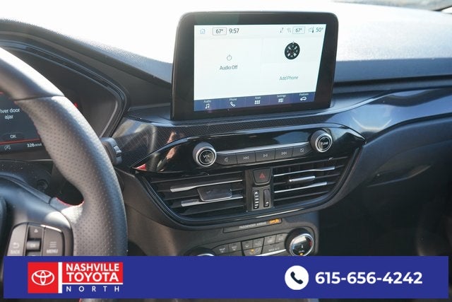 , SAFETY FEATURES, AUDIO FEATURES, COMFORT AND CONVENIENCE, EXTERIOR FEATURES, ADDITIONAL FEATURES. Equipment Group 300A, 3.81 Axle Ratio, 4-Wheel Disc Brakes, 6 Speakers, ABS brakes, Air Conditioning, Alloy wheels, AM/FM radio: SiriusXM, AM/FM Stereo, Auto High-beam Headlights, Automatic temperature control, Brake assist, Bumpers: body-color, Compass, Delay-off headlights, Driver door bin, Driver vanity mirror, Dual front impact airbags, Dual front side impact airbags, Electronic Stability Control, Emergency communication system: SYNC 4 911 Assist, FordPass Connect, Four wheel independent suspension, Front anti-roll bar, Front Bucket Seats, Front Center Armrest, Front dual zone A/C, Front License Plate Bracket, Front reading lights, Fully automatic headlights, Illuminated entry, Internet access capable: FordPass Connect 4G, Knee airbag, Low tire pressure warning, Occupant sensing airbag, Outside temperature display, Overhead airbag, Overhead console, Panic alarm, Passenger door bin, Passenger vanity mirror, Power door mirrors, Power driver seat, Power steering, Power windows, Radio data system, Rear anti-roll bar, Rear reading lights, Rear seat center armrest, Rear window defroster, Rear window wiper, Remote keyless entry, Speed control, Speed-sensing steering, Speed-Sensitive Wipers, Split folding rear seat, Spoiler, Sport steering wheel, Steering wheel mounted audio controls, SYNC 4, Tachometer, Telescoping steering wheel, Tilt steering wheel, Traction control, Trip computer, Variably intermittent wipers, Vinyl/Cloth Front Sport Contour Bucket Seats, and Wheels: 18 Rock Metallic Painted Aluminum.