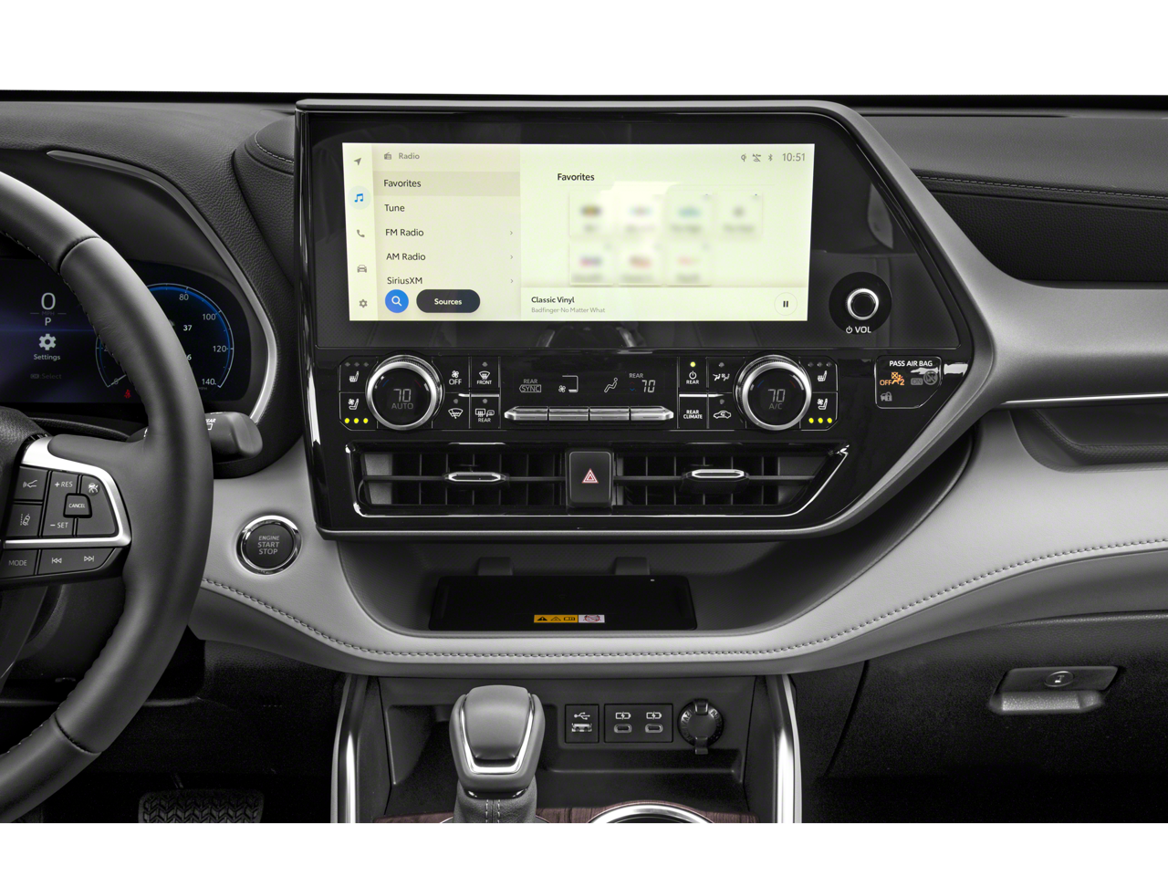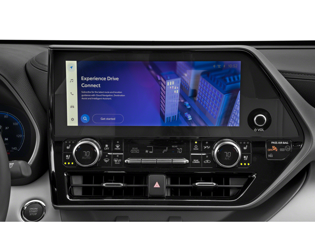 , SAFETY FEATURES, AUDIO FEATURES, COMFORT AND CONVENIENCE, EXTERIOR FEATURES, ADDITIONAL FEATURES, AWD. AWD, 11 Speakers, 3rd row seats: split-bench, 4-Wheel Disc Brakes, ABS brakes, Air Conditioning, Alloy wheels, AM/FM radio: SiriusXM, Apple CarPlay/Android Auto, Auto High-beam Headlights, Auto-dimming Rear-View mirror, Automatic temperature control, Brake assist, Bumpers: body-color, Chrome wheels, Delay-off headlights, Driver door bin, Driver vanity mirror, Dual front impact airbags, Dual front side impact airbags, Electronic Stability Control, Emergency communication system: Safety Connect (up to 10-year trial subscription), Exterior Parking Camera Rear, Four wheel independent suspension, Front anti-roll bar, Front Bucket Seats, Front Center Armrest, Front dual zone A/C, Front fog lights, Front reading lights, Fully automatic headlights, Garage door transmitter: HomeLink, Heated and Ventilated Front Bucket Seats, Heated door mirrors, Heated front seats, Heated steering wheel, Illuminated entry, Knee airbag, Leather Seat Trim, Leather Shift Knob, Leather steering wheel, Low tire pressure warning, Memory seat, Navigation system: Drive Connect Cloud Navigation (1-year trial subscription), Occupant sensing airbag, Outside temperature display, Overhead airbag, Overhead console, Panic alarm, Passenger door bin, Passenger vanity mirror, Power door mirrors, Power driver seat, Power Liftgate, Power moonroof, Power passenger seat, Power steering, Power windows, Radio: 12.3 Toyota Audio Multimedia with JBL Premium Audio, Rear air conditioning, Rear anti-roll bar, Rear reading lights, Rear window defroster, Rear window wiper, Reclining 3rd row seat, Remote keyless entry, Security system, Speed control, Speed-sensing steering, Split folding rear seat, Spoiler, Steering wheel mounted audio controls, Tachometer, Telescoping steering wheel, Tilt steering wheel, Traction control, Trip computer, Turn signal indicator mirrors, Variably intermittent wipers, Ventilated front seats, and Wheels: 20 Chrome-Finished Alloy.