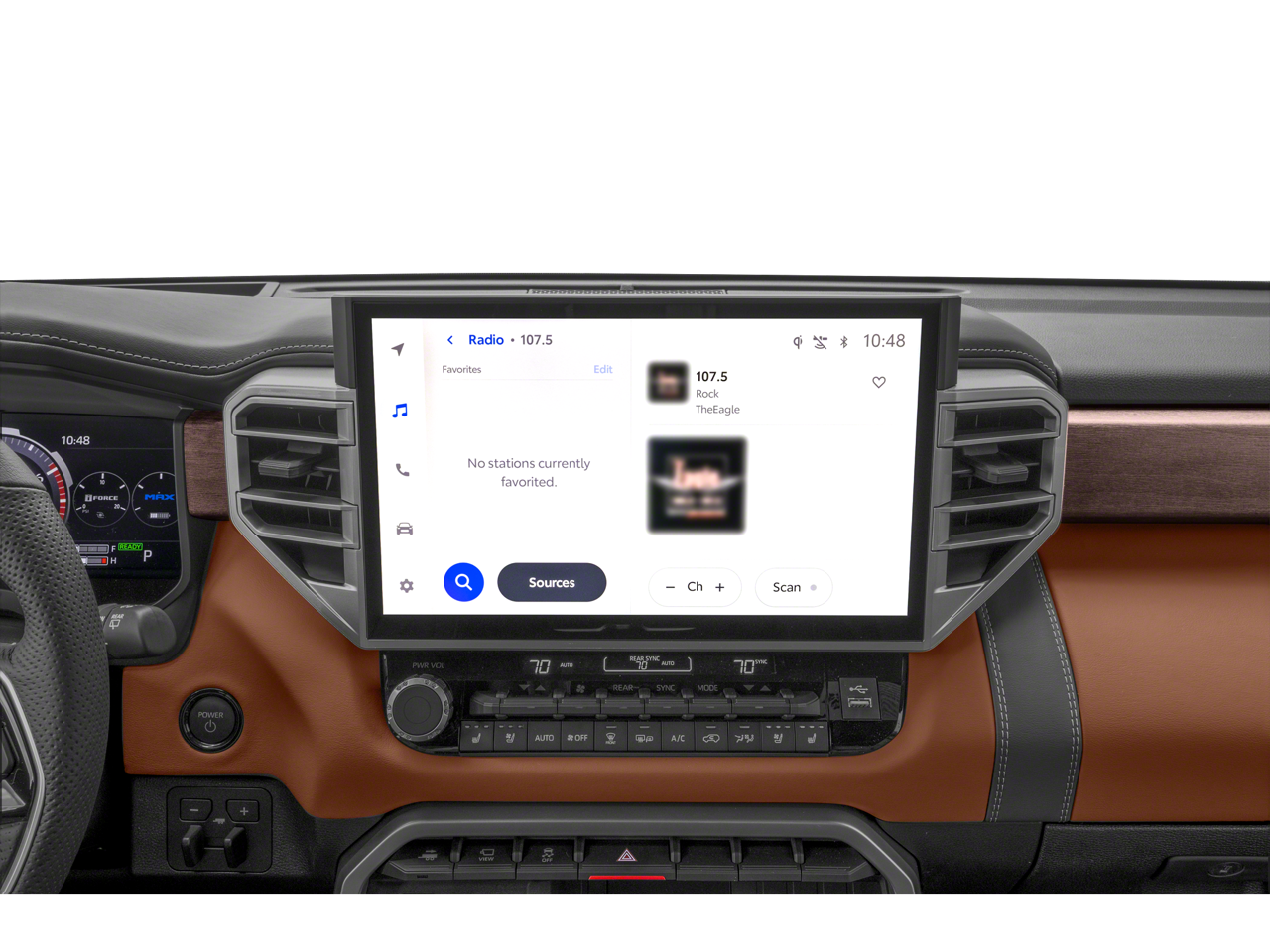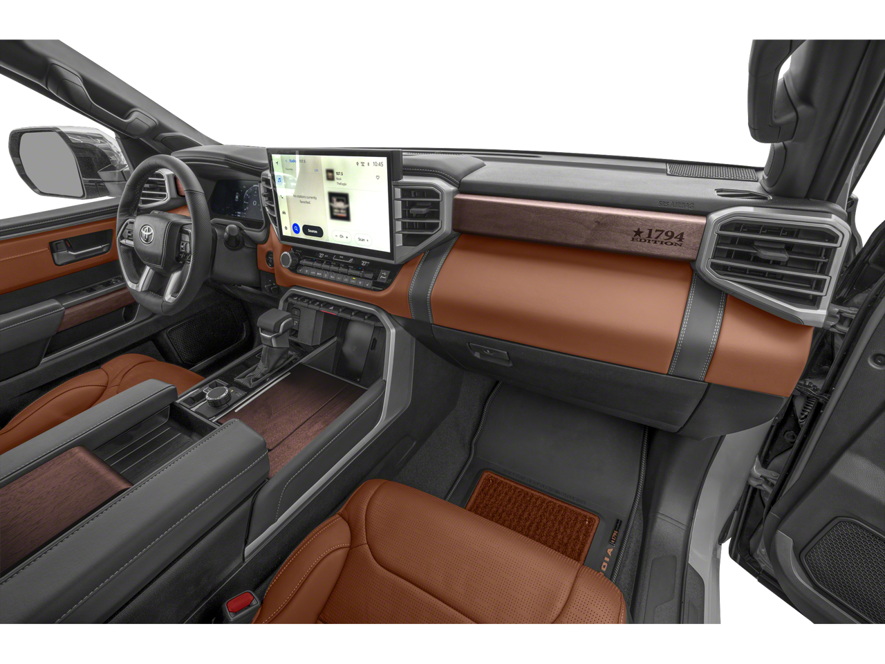 V6 Hybrid, 10-Speed Automatic, 4WD, 1794 Grade Package, ABS brakes, Active Cruise Control, Alloy wheels, Compass, Electronic Stability Control, Front dual zone A/C, Heated door mirrors, Heated front seats, Heated rear seats, Illuminated entry, Low tire pressure warning, Power Liftgate, Power moonroof, Premium Leather Seat Trim, Remote keyless entry, Traction control. 1794 Grade Package, V6 Hybrid, 10-Speed Automatic, 4WD, ABS brakes, Active Cruise Control, Alloy wheels, Compass, Electronic Stability Control, Front dual zone A/C, Heated door mirrors, Heated front seats, Heated rear seats, Illuminated entry, Low tire pressure warning, Power Liftgate, Power moonroof, Premium Leather Seat Trim, Remote keyless entry, Traction control, 14 Speakers, 20 Alloy Wheels, 3rd row seats: split-bench, 4-Wheel Disc Brakes, Air Conditioning, AM/FM radio: SiriusXM, Anti-whiplash front head restraints, Apple CarPlay/Android Auto, Auto High-beam Headlights, Auto tilt-away steering wheel, Auto-dimming door mirrors, Auto-dimming Rear-View mirror, Automatic temperature control, Brake assist, Bumpers: body-color, Delay-off headlights, Driver door bin, Driver vanity mirror, Dual front impact airbags, Dual front side impact airbags, Emergency communication system: Safety Connect (10-year trial), Exterior Parking Camera Rear, Front anti-roll bar, Front Bucket Seats, Front Center Armrest w/Storage, Front fog lights, Front reading lights, Front wheel independent suspension, Fully automatic headlights, Garage door transmitter: HomeLink, Genuine wood door panel insert, Headlight cleaning, Heated and Ventilated Front Seats, Heated steering wheel, Knee airbag, Leather Shift Knob, Leather steering wheel, Memory seat, Navigation system: Drive Connect (1 year trial) includes Cloud Navigation with real time traffic and Google POI, Occupant sensing airbag, Outside temperature display, Overhead airbag, Overhead console, Panic alarm, Passenger door bin, Passenger vanity mirror, Power door mirrors, Power driver seat, Power passenger seat, Power steering, Power windows, Premium audio system: JBL, Radio: 14 Toyota Audio Multimedia with JBL Premium Audio, Rain sensing wipers, Rear air conditioning, Rear reading lights, Rear seat center armrest, Rear window defroster, Rear window wiper, Reclining 3rd row seat, Security system, Speed control, Speed-sensing steering, Split folding rear seat, Spoiler, Sport steering wheel, Steering wheel mounted audio controls, Tachometer, Telescoping steering wheel, Tilt steering wheel, Trip computer, Turn signal indicator mirrors, Variably intermittent wipers, Ventilated front seats, Ventilated rear seats, and Voltmeter.